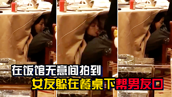 在饭馆无意间拍到女友躲在餐桌下帮男友口